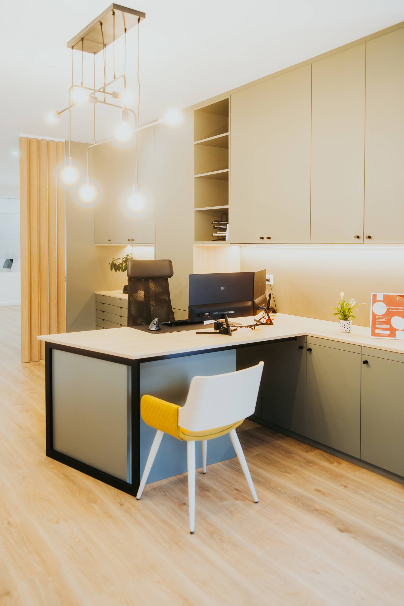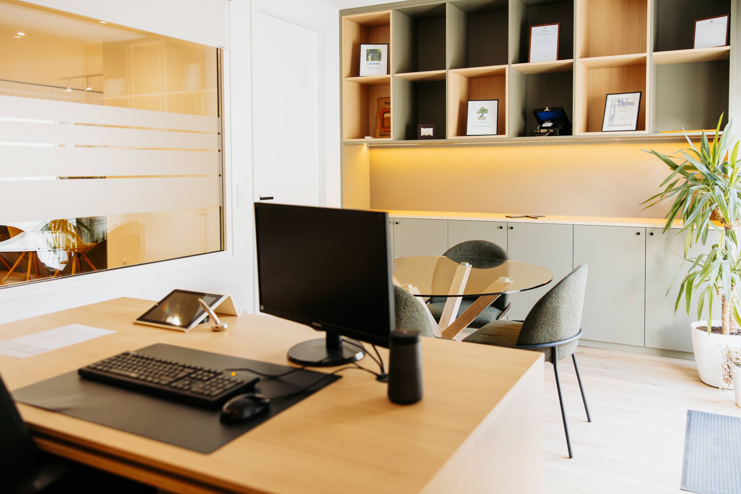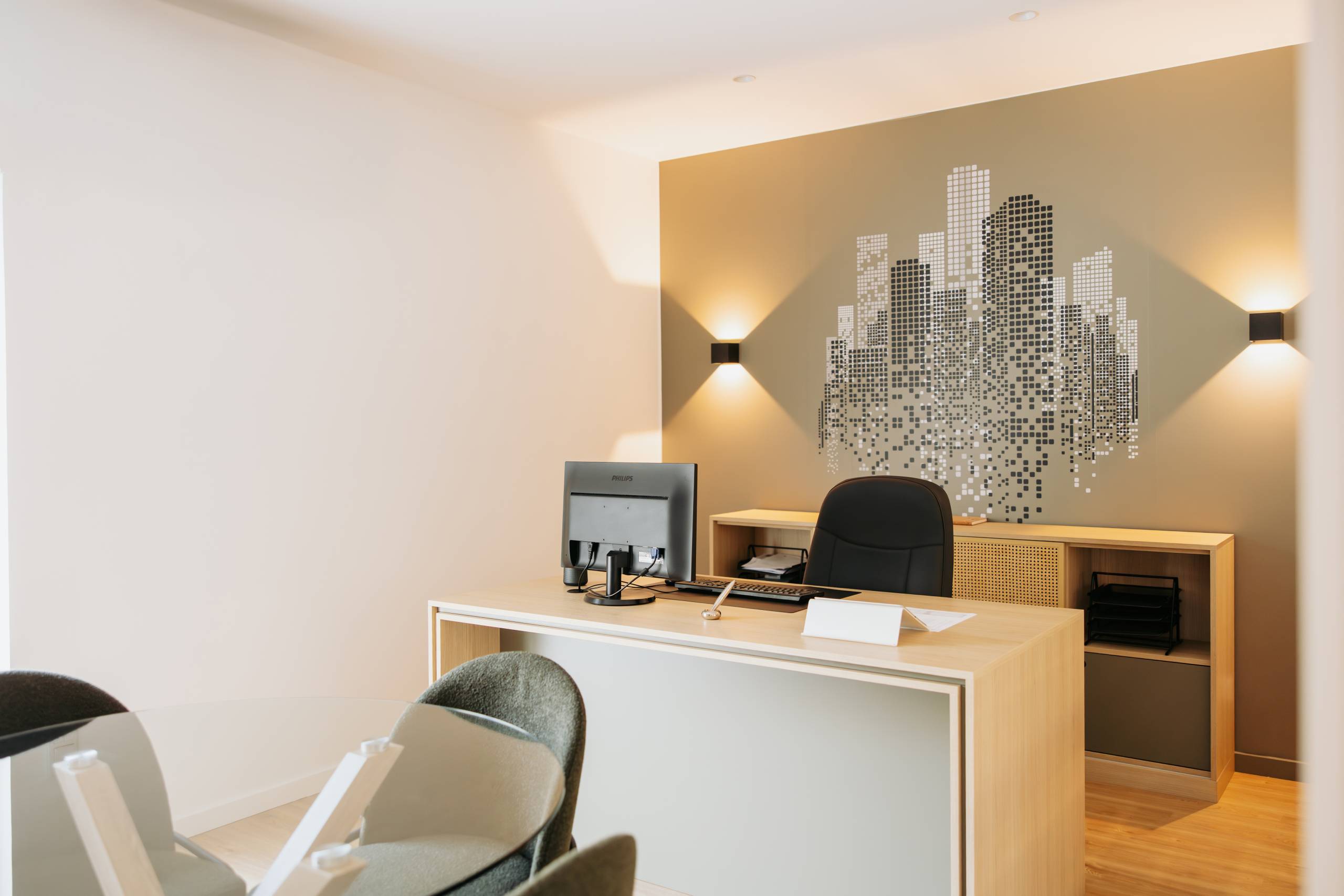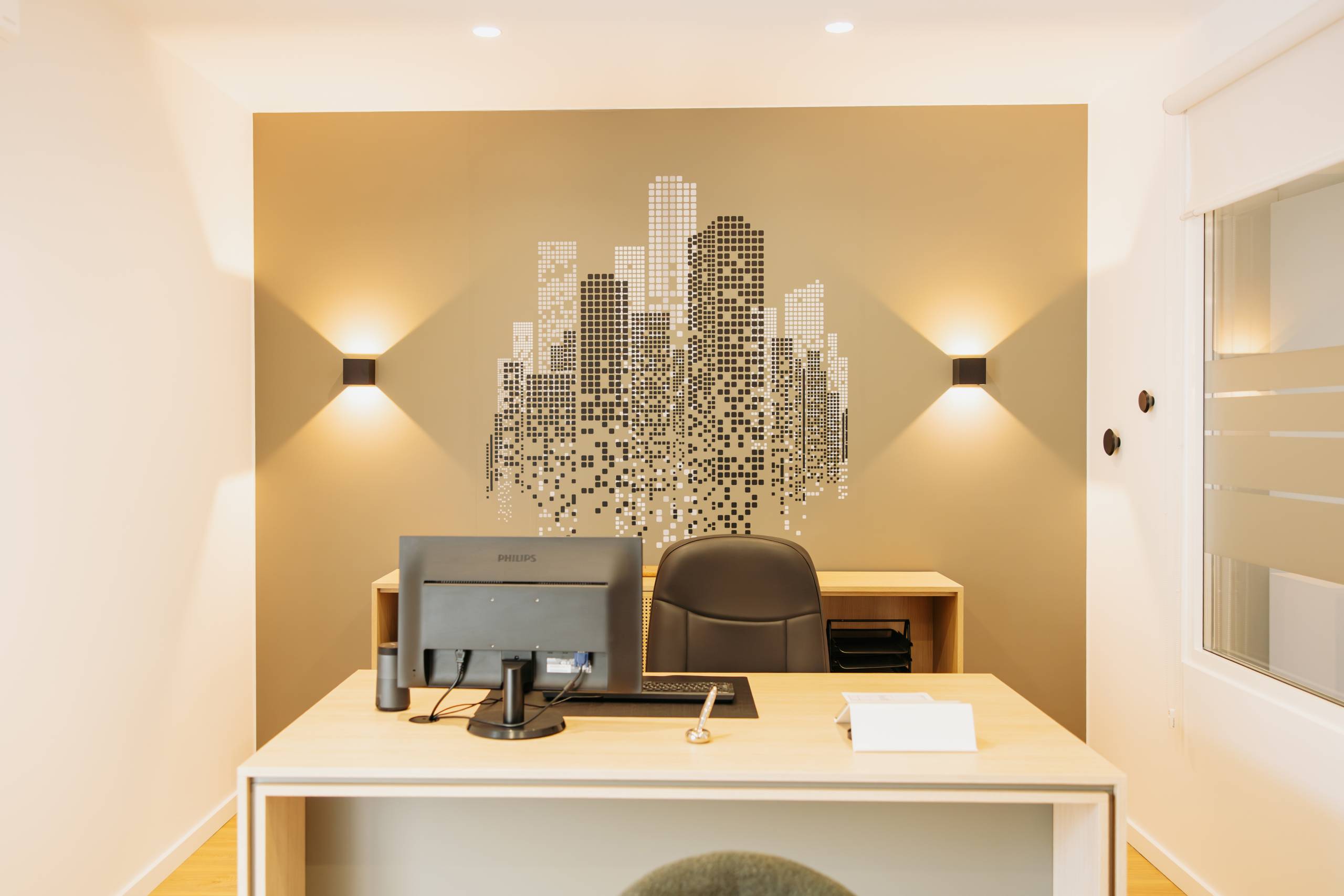 O seguimento de obra foi crucial para garantir a conformidade da execução com o planeamento e os desenhos técnicos, resultando num espaço que harmoniza funcionalidade com um design convidativo. A gestão e coordenação eficientes das diversas fases e profissionais permitiram concluir a transformação num ambiente de trabalho luminoso, organizado e pronto a receber clientes.