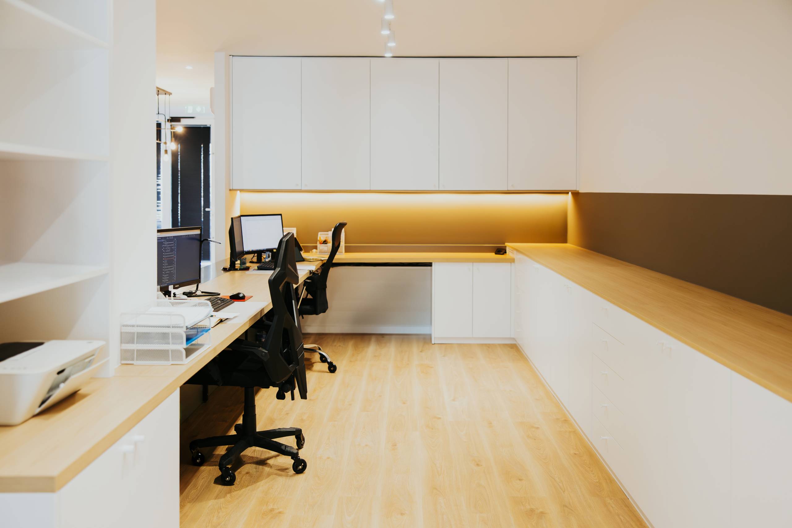A transformação do espaço comercial para o escritório moderno da Bonsai – Administração de Condomínios que ilustra uma abordagem meticulosa ao design de interiores e à gestão de projetos. O objetivo primordial foi criar um ambiente acolhedor e profissional, otimizando o layout para refletir a identidade e os serviços da empresa, focando-se na funcionalidade e na estética contemporânea.